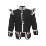 Pipe Band Doublet – Black Wool White Piping & Gold Braid Trim